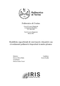 Modifiche superficiali di vetri inerti e bioattivi con rivestimenti polimerici depositati tramite plasma = Surface modifications of inert and bioactive glasses with plasma-deposited polymeric coatings.