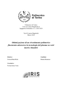 Ottimizzazione di un rivestimento polimerico fluorurato depositato tramite plasma su vetri inerti e bioattivi. = Optimisation of a plasma-deposited fluorinated polymer coating on inert and bioactive glasses.