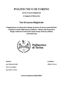 Progettazione con Generative Design di piastre di sterzo motociclistiche realizzate tramite fabbricazione additiva = Design with Generative Design method of motorcycle triple clamps made by additive manufacturing.