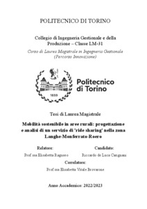 Mobilità sostenibile in aree rurali: progettazione e analisi di un servizio di 'ride sharing' nella zona Langhe-Monferrato-Roero = Sustainable mobility in rural areas: design and analysis of a 'ride sharing' service in the Langhe-Monferrato-Roero area.