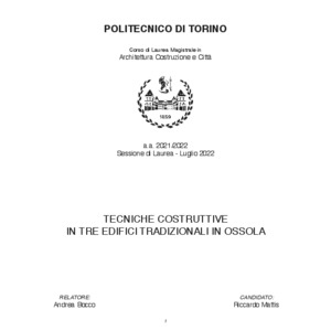 Rel. Paolo Cornaglia. Politecnico di Torino, Corso di laurea magistrale in Architettura Costruzione Città, 2022