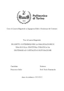 Rel. Paola Gregory, Antonio Sorrentino. Politecnico di Torino, Corso di laurea magistrale in Architettura Per Il Progetto Sostenibile, 2022
