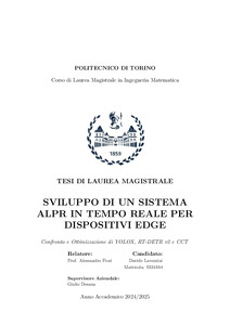 SVILUPPO DI UN SISTEMA ALPR IN TEMPO REALE PER DISPOSITIVI EDGE = DEVELOPMENT OF A REAL-TIME ALPR SYSTEM FOR EDGE DEVICES.
