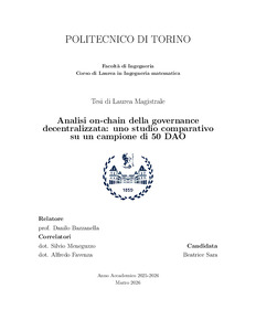 Analisi on-chain della governance decentralizzata: uno studio comparativo su un campione di 50 DAO = On-chain analysis of decentralized governance: a comparative study on a sample of 50 DAOs.