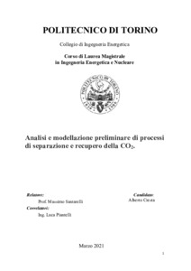 Analisi e modellazione preliminare di processi di separazione e recupero della CO2.