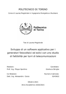 “Sviluppo di un software applicativo per i generatori fotovoltaici ed eolici con uno studio di fattibilità per torri di telecomunicazioni” = "Development of an application software for photovoltaic and wind generators with a feasibility study for telecommunications towers".