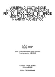 Sistema di coltivazione in contenitore Open-Source per la produzione di specie vegetali su micro-scala in ambito domestico = Open-Source container cultivation system for the production of plant species on a micro-scale at home.
