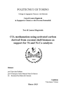 CO2 methanation using activated carbon derived from coconut shell biomass as support for Ni and Ni-Ce catalysts.
