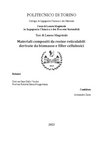 Materiali compositi da resine reticolabili derivate da biomasse e filler cellulosici = Composite materials from biobased thermosetting resins and cellulosic fillers.