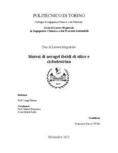Sintesi di aerogel ibridi di silice e ciclodestrina. = Synthesis of silica and cyclodextrin hybrid aerogels.