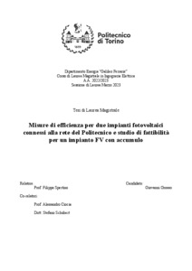 Misure di efficienza per due impianti fotovoltaici connessi alla rete del Politecnico e studio di fattibilità per un impianto FV con accumulo = Measurements of efficiency for two grid-connected photovoltaic systems of Politecnico and feasibility study of a PV system with storage.