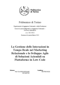 Rel. Alberto De Marco. Politecnico di Torino, Corso di laurea magistrale in Ingegneria Gestionale, 2023