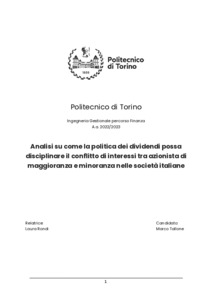 Analisi su come la politica dei dividendi possa disciplinare il conflitto di interessi tra azionista di maggioranza e minoranza nelle società italiane.