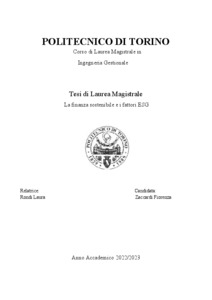 La finanza sostenibile e i fattori ESG = Sustainable finance and ESG factors.