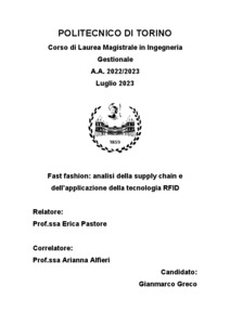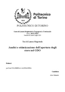 Rel. Giovanni Zenezini. Politecnico di Torino, Corso di laurea magistrale in Ingegneria Gestionale, 2023