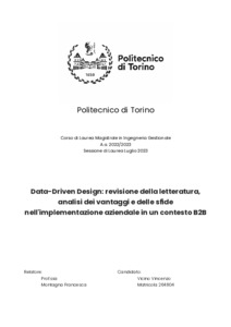 Data-driven design: revisione della letteratura, analisi dei vantaggi e delle sfide nell'implementazione aziendale in un contesto B2B = Data-driven design: Literature review, analysis of benefits and challenges in business implementation in a B2B context.