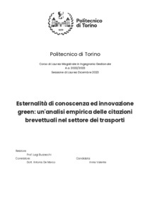 Esternalità di conoscenza ed innovazione green: un'analisi empirica delle citazioni brevettuali nel settore dei trasporti = Knowledge externalities and green innovation: an empirical analysis of patent citations in the transport sector.
