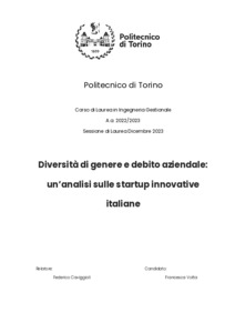 Diversità di genere e debito aziendale: un’analisi sulle startup innovative italiane = Gender diversity and corporate debt: an analysis of innovative Italian startups.