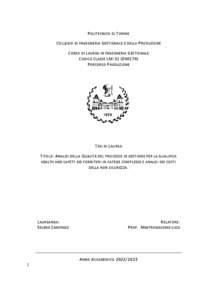 ANALISI DELLA QUALITÀ DEL PROCESSO DI GESTIONE PER LA QUALIFICA HEALTH AND SAFETY DEI FORNITORI IN CATENE COMPLESSE E ANALISI DEI COSTI DELLA NON SICUREZZA.