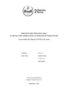 PROGETTARE PER EDUCARE: IL RUOLO DEL DESIGN NELLE STRATEGIE DIDATTICHE Il caso studio del Club per l’UNESCO di Torino = DESIGN FOR EDUCATION: THE ROLE OF DESIGN IN EDUCATIONAL STRATEGIES The case study of the Club for UNESCO in Turin.