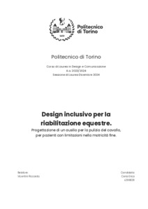 Design inclusivo per la riabilitazione equestre. Progettazione di un ausilio per la pulizia del cavallo, per pazienti con limitazioni nella motricità fine = Inclusive design for equestrian rehabilitation. Design of an assistive technology product for grooming horses for patients with limitations in fine motor skills.