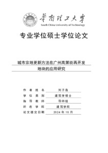 A Study on the Morphological Evolution of the Inner City Wall Area of Guangzhou (GuiDe Gate - XiaoNan Gate Section) and its Revitalizing Design.