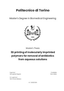 3D printing of molecularly imprinted polymers for removal of antibiotics from aqueous solutions.