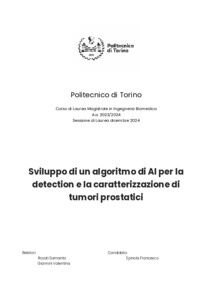 Sviluppo di un algoritmo di AI per la detection e la caratterizzazione di tumori prostatici = Development of an AI Algorithm for Detection and Characterization of Prostate Tumors.