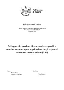 Sviluppo di giunzioni di materiali compositi a matrice ceramica per applicazioni negli impianti a concentrazione solare (CSP) = Development of joints of ceramic matrix composite materials for applications in concentrated solar plants (CSPs).
