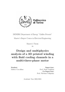 Design and multiphysics analysis of a 3D printed winding with fluid cooling channels in a multi-three-phase motor.