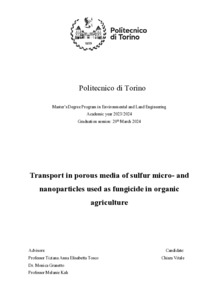 Transport in porous media of sulfur micro- and nanoparticles used as fungicide in organic agriculture.