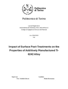 Rel. Abdollah Saboori. Politecnico di Torino, Corso di laurea magistrale in Ingegneria Dei Materiali Per L'Industria 4.0, 2025