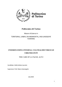 UNDERSTANDING INTERNAL COLONIALISM THROUGH URBANIZATION THE CASE OF LA PAZ-EL ALTO.