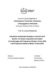 Valutazione Ambientale Strategica e Grandi Eventi Sportivi. Un’analisi comparativa dei sistemi di monitoraggio del Programma Olimpico Torino 2006 e del Programma Olimpico Milano-Cortina 2026.
